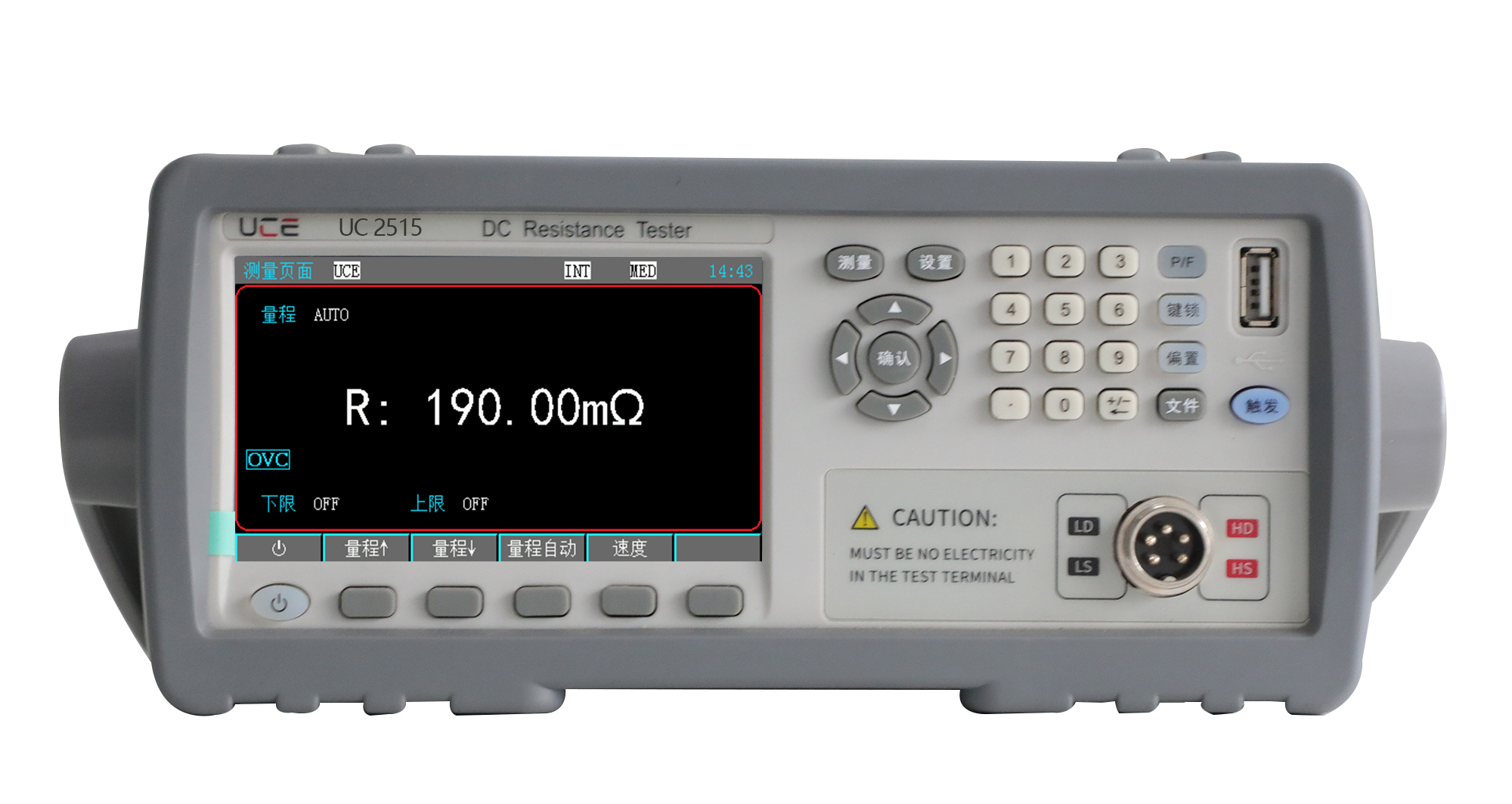 量程 | (UC2515B):30mΩ/300mΩ/3Ω/30Ω/300Ω/3kΩ/30kΩ (UC2515A):30mΩ/300mΩ/3Ω/30Ω/300Ω/3kΩ/30kΩ/300kΩ (UC2515):30mΩ/300mΩ/3Ω/30Ω/300Ω/3kΩ/30kΩ/300kΩ/3MΩ | ||