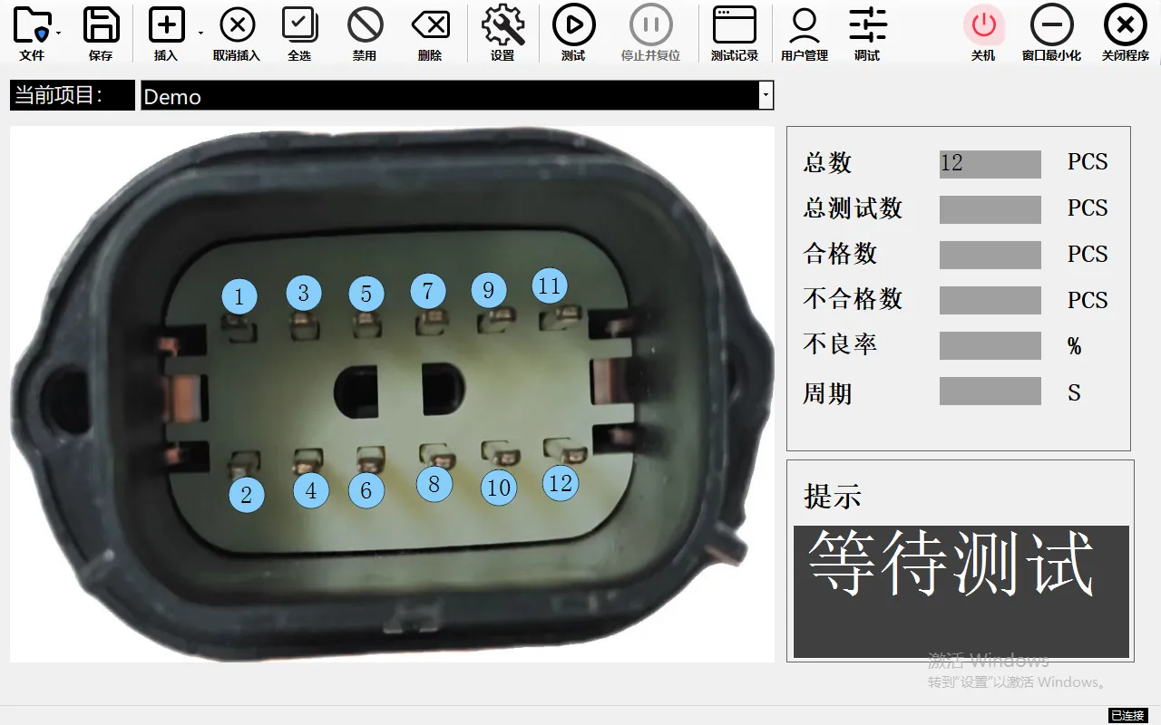 · 數據可視化測試:測試完成后,會立刻在屏幕頁面顯示當前端子的合格率,不良率,總測試用時等。
